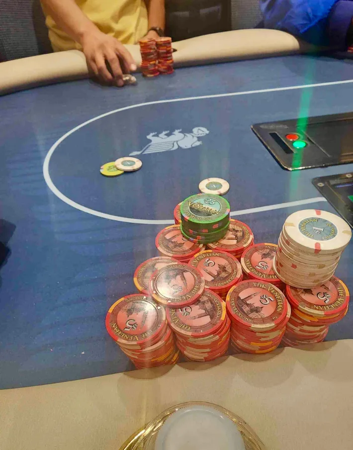 Nicole works in the poker industry in Las Vegas, so she preferred not to have her photo shown here. She’s already seeing great results by adopting the Controlled Chaos™ style at the table. She shared this chip stack photo from a $200 win at the Venetian, where she played aggressively with hands she normally wouldn’t have.