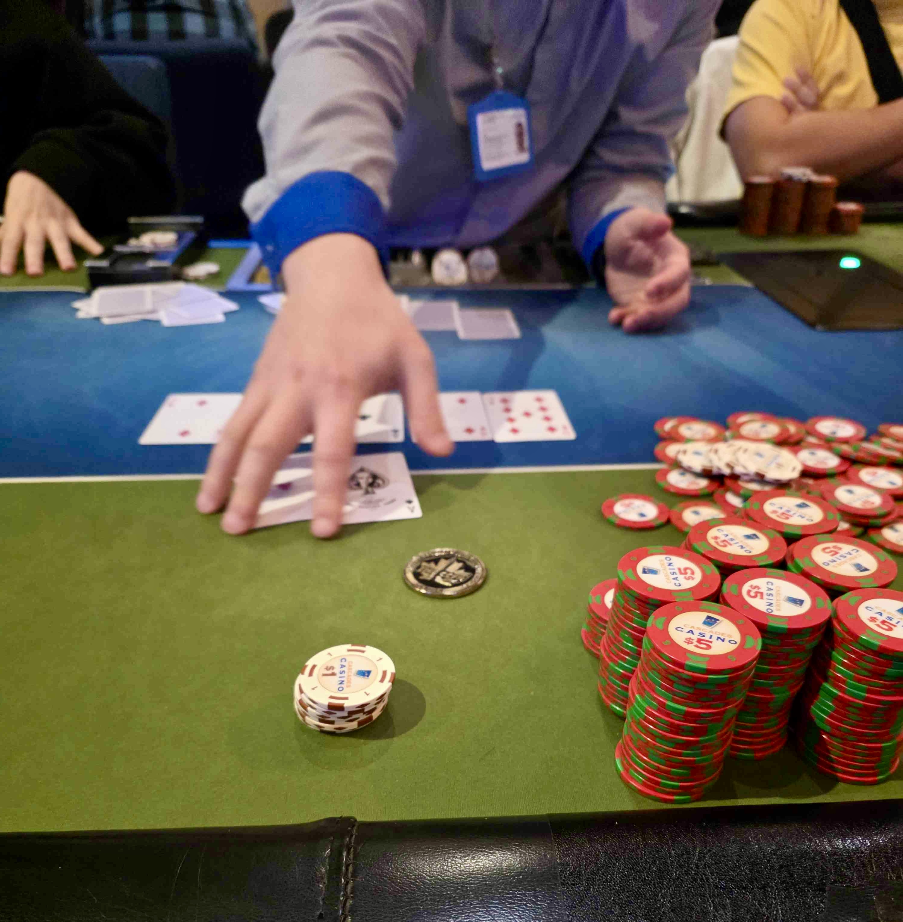 Here's the crazy part: buy-ins are capped at $200 at this casino. So Joseph completely ran over the table with Controlled Chaos™ — starting with one buy-in and building it to over $2,000.
